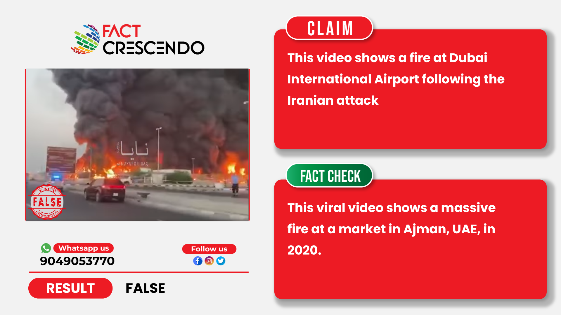So, Taking account of all this evidence, we can understand that footage of a fire at the Ajman fruit market back in 2020 was falsely shared as a recent Iranian attack at Dubai International Airport.
