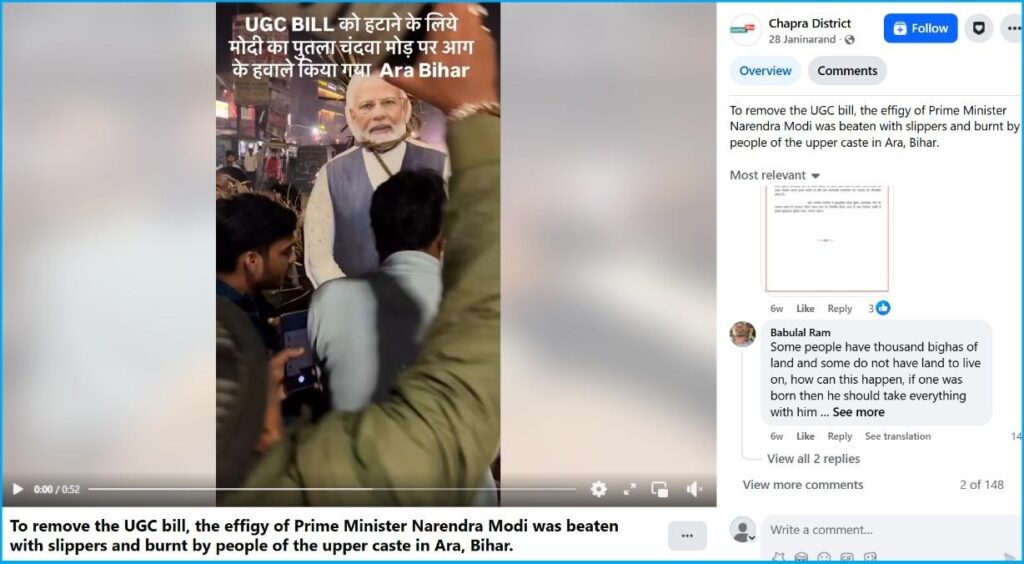 Moving forward, we found the same video uploaded on a Facebook post on 29 January 2026 with the same details. The post states that the video is from the Aara district of Bihar.
