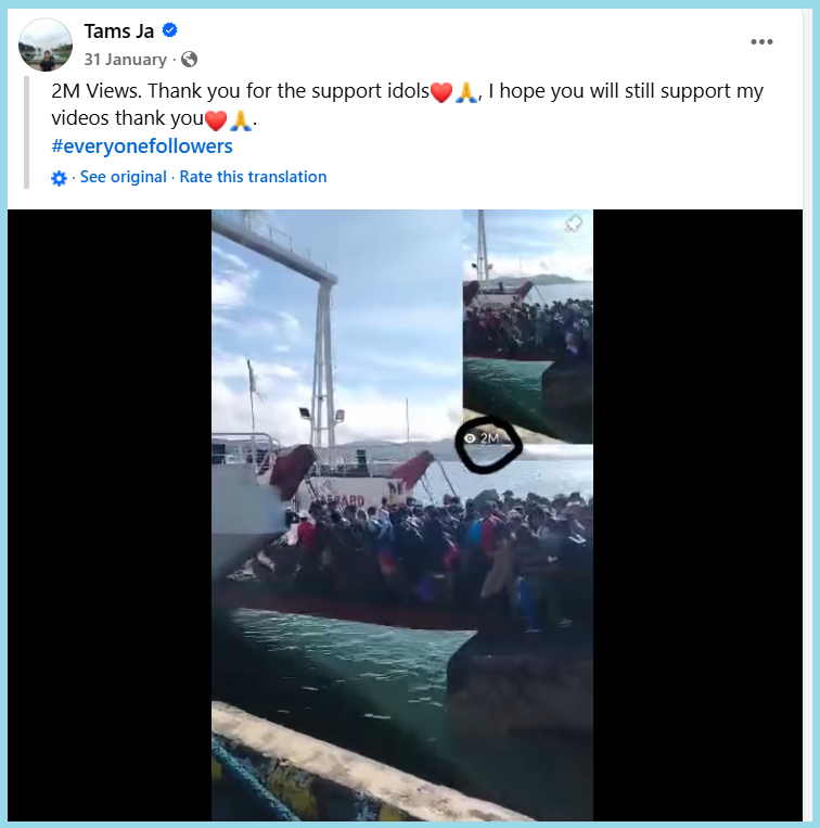 The same video was uploaded on this Facebook page on January 14, 2026.