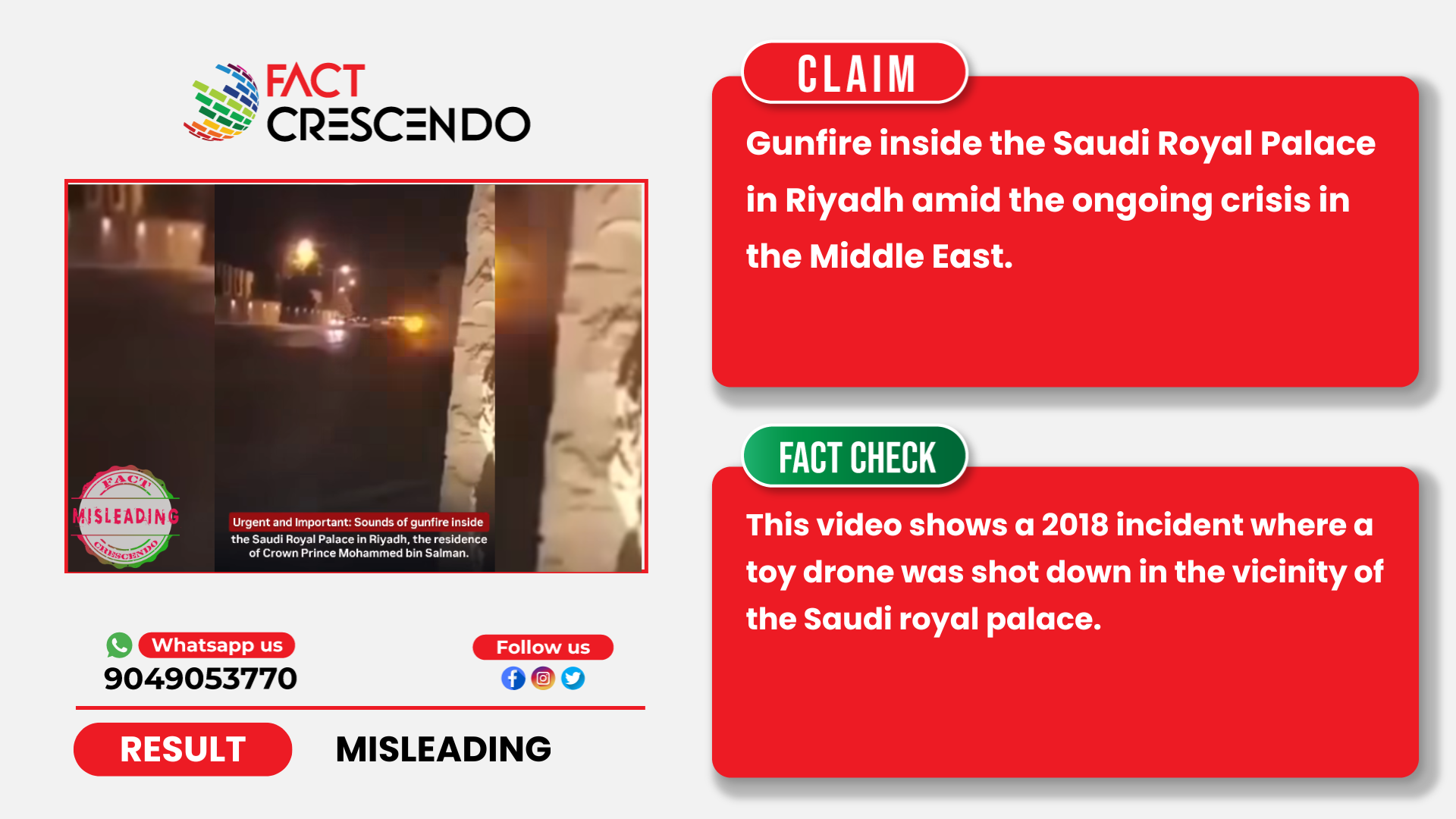 Fact Crescendo found that the claim made along with the viral video to be Misleading. This video shows a 2018 incident where a toy drone was shot down in the vicinity of the Saudi royal palace.