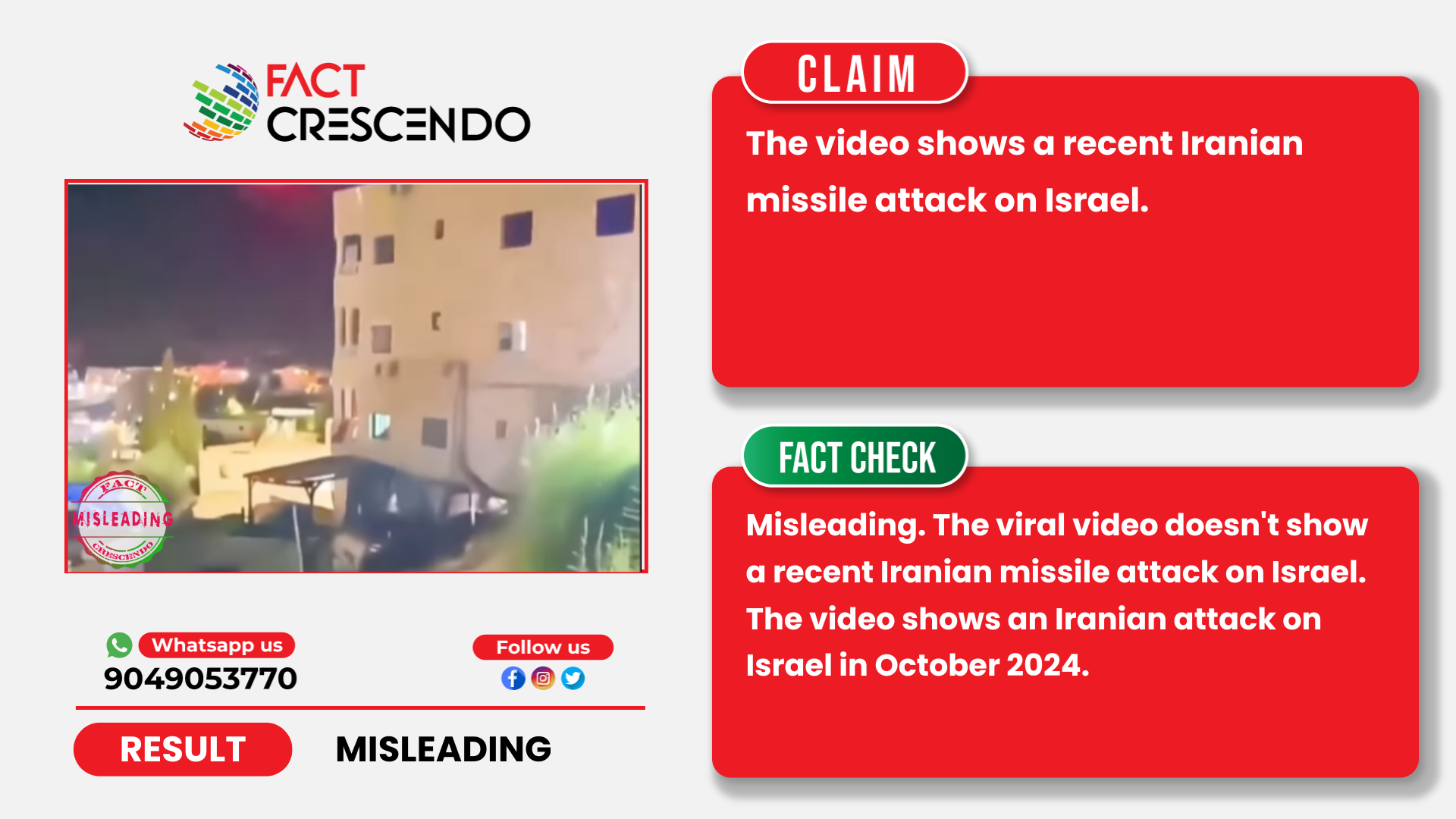 From our investigation, we can say that the claim is misleading. The viral video doesn’t show a recent Iranian missile attack on Israel. The video shows an Iranian attack on Israel in October 2024.