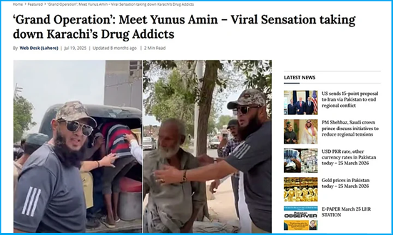A report published by Pakistan Observer identified the man as one Yunus Amin, who is behind the “Grand Operation.” He worked alongside the local police to catch drug addicts and later shift them to rehabilitation centers.