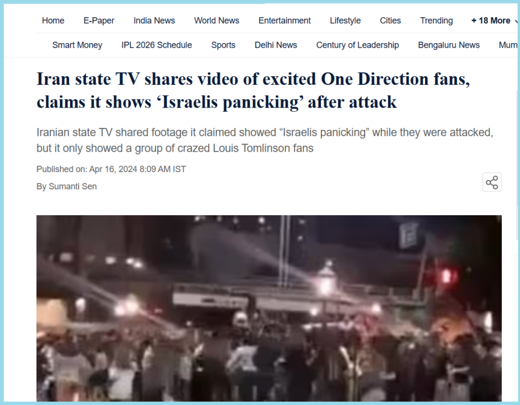 According to the report, “Iranian state TV recently shared footage it claimed revealed the moment “Israelis panicked” while they were attacked with missiles and drones. But in reality, the footage only showed a group of crazed Louis Tomlinson fans.”