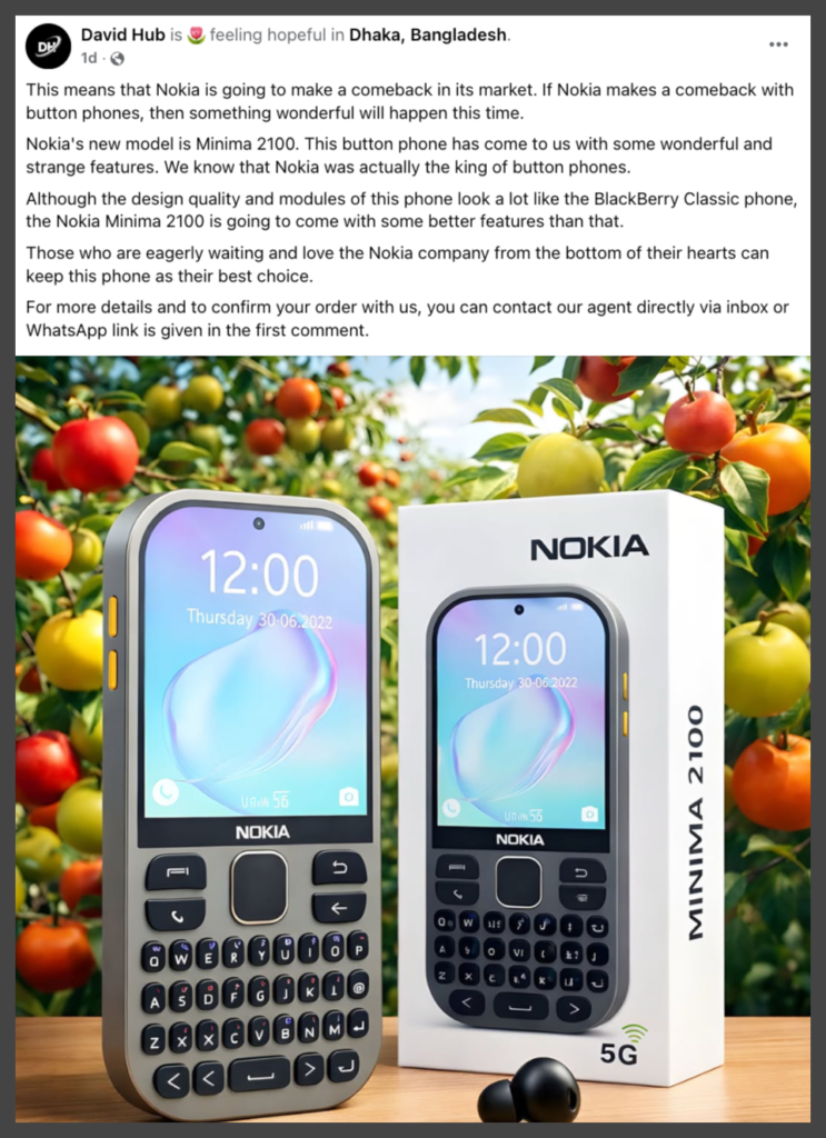 A claim circulating widely on social media platforms suggests that Nokia is preparing to launch a new device called the “Nokia Minima 2100,” often described as a compact 5G phone with a retro keypad design. These posts are typically accompanied by polished images and detailed specifications, giving the impression of an official product announcement. However, after reviewing, we found this claim to be false.