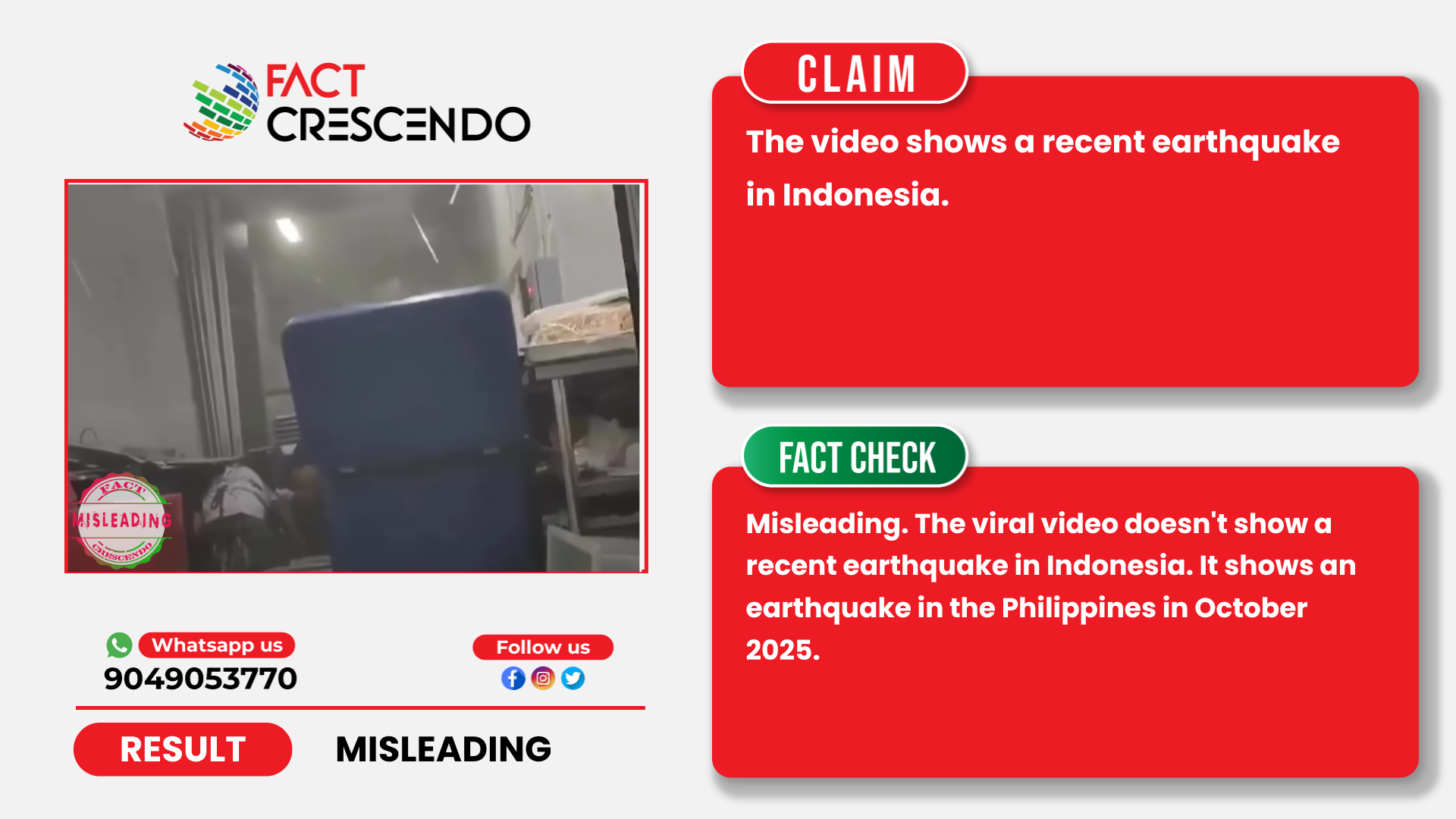 From our investigation, we can say that the claim is misleading. The viral video doesn’t show a recent earthquake in Indonesia. It shows an earthquake in the Philippines in October 2025.