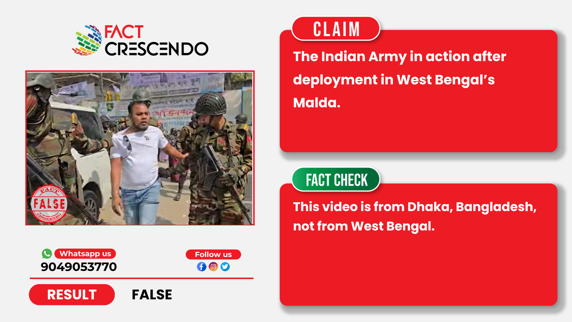 Fact Crescendo found the claim made along with the viral video to be False. This video is from Dhaka, Bangladesh, not from West Bengal.