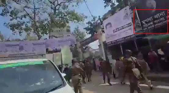 On closely analysing the video, we noticed “Bangladesh Army” written on a vehicle. A visible signboard, when translated, mentioned “Mugda Police Station,” located in Dhaka, Bangladesh. We also geolocated this specific location and confirmed that the surroundings correspond to those shown in the viral video.