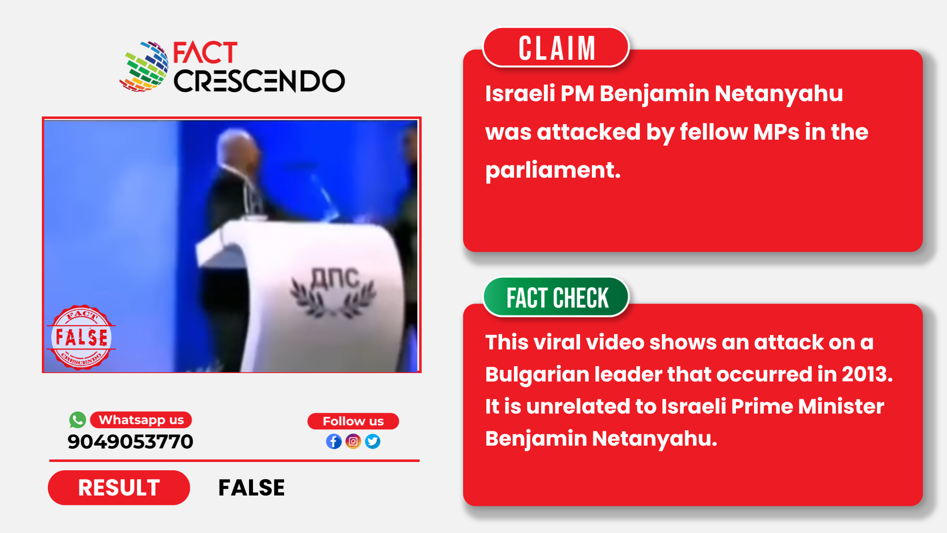 Fact Crescendo found the claim made along with the viral video to be False. This viral video shows an attack on a Bulgarian leader that occurred in 2013. It is unrelated to Israeli Prime Minister Benjamin Netanyahu.