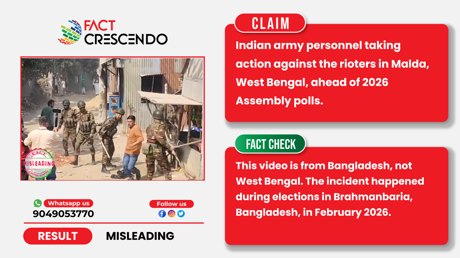 So, based on all this evidence, we can understand that this video is actually from Bangladesh. A video of an army lathi charge during riots in Bangladesh’s general elections is falsely shared as an incident from West Bengal.