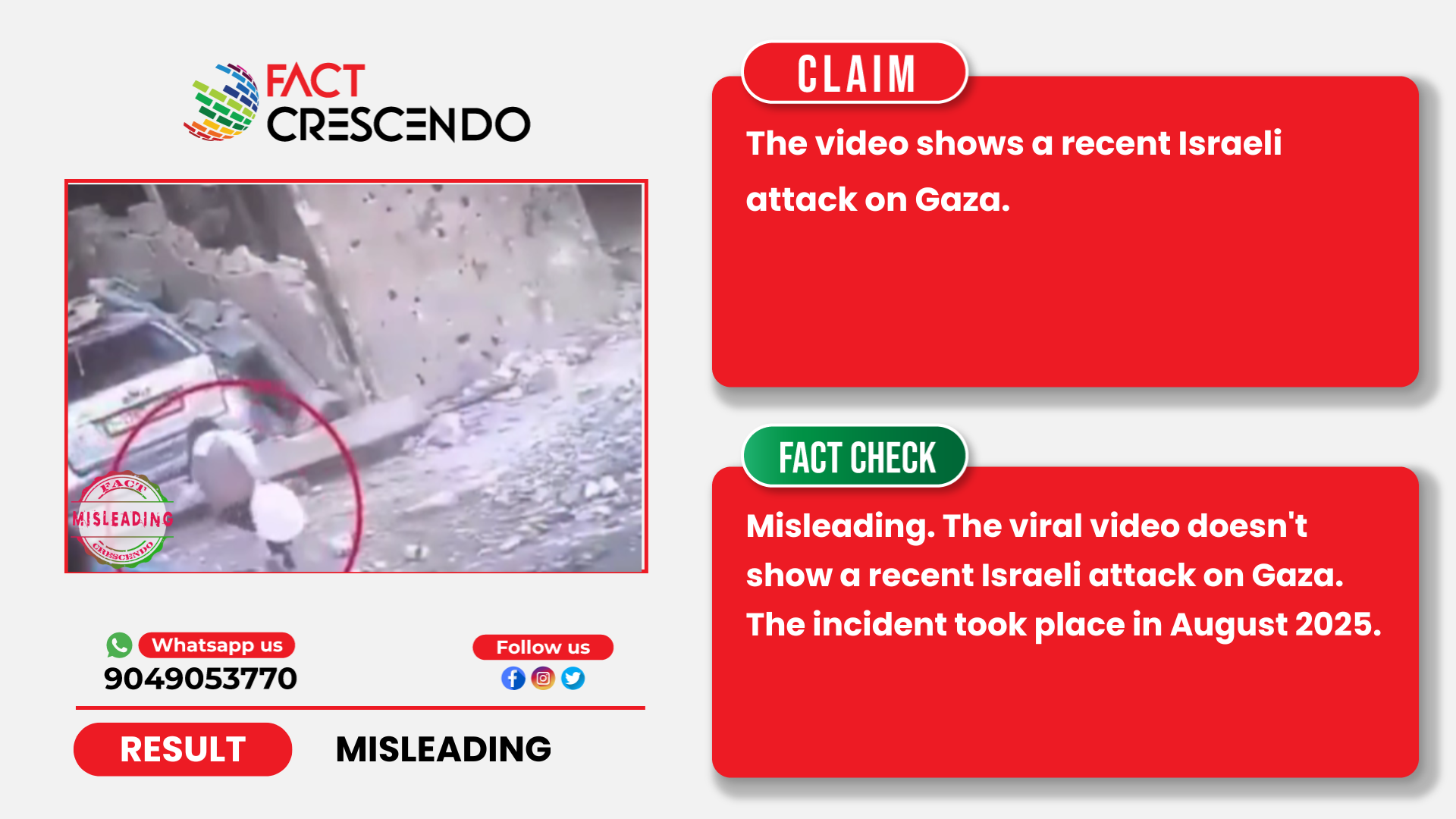 From our investigation, we can say that the claim is misleading. The viral video doesn’t show a recent Israeli attack on Gaza. The incident took place in August 2025.