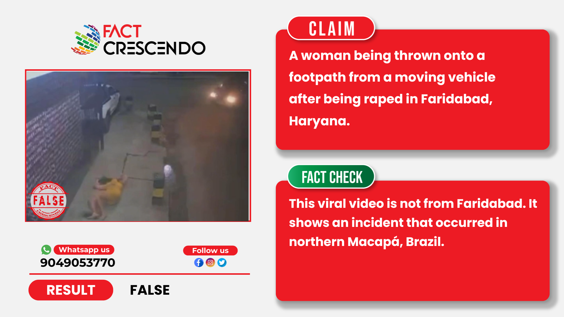 Based on the evidence, it is clear that this video is not from India. Instead, it captures an incident that occurred on 28 March in Macapa, Brazil. Therefore, this video is unrelated to India or Faridabad.