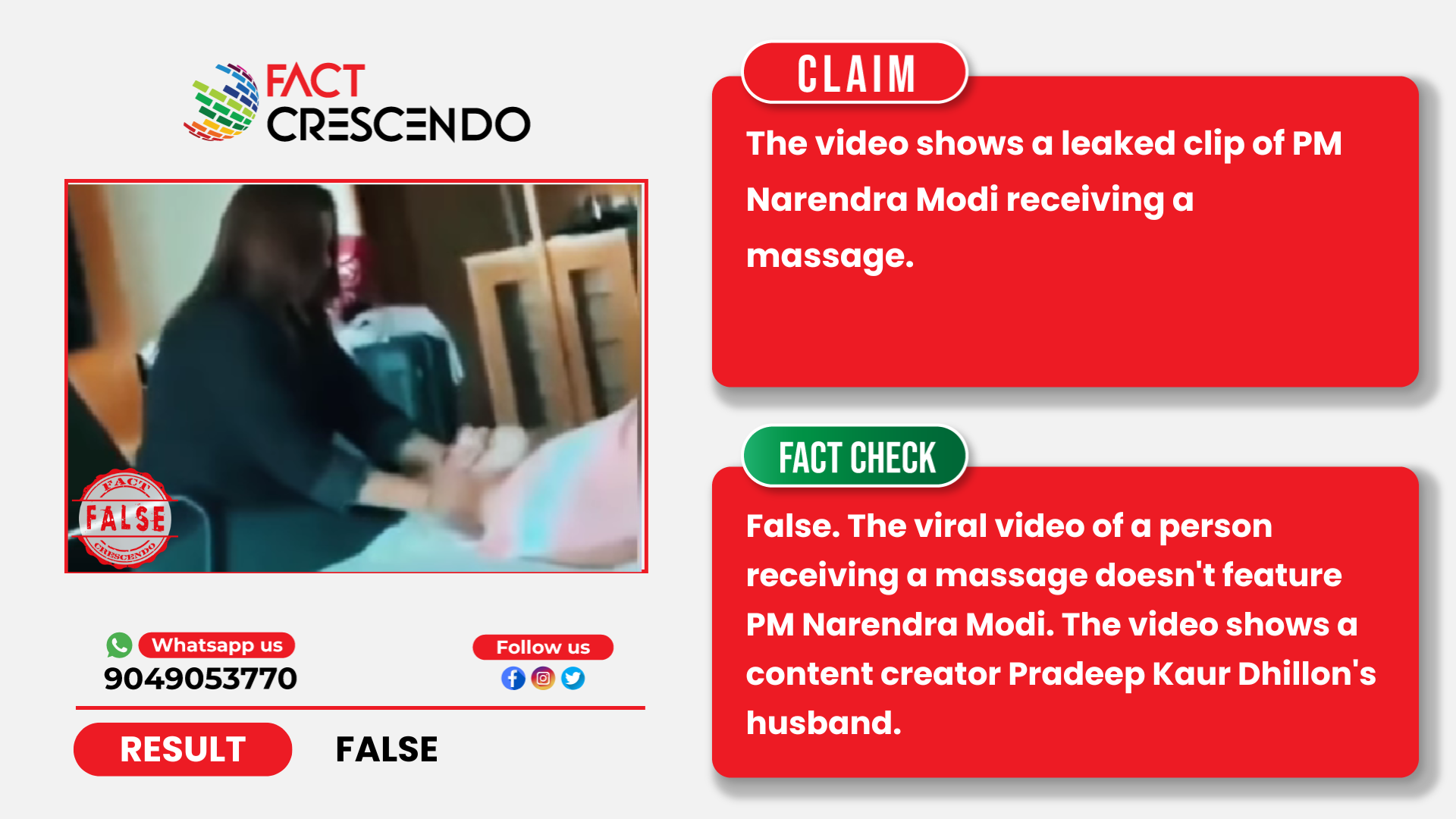 From our investigation, we can say that the claim is false. The viral video of a person receiving a massage doesn’t feature PM Narendra Modi. The video shows a content creator Pradeep Kaur Dhillon’s husband.