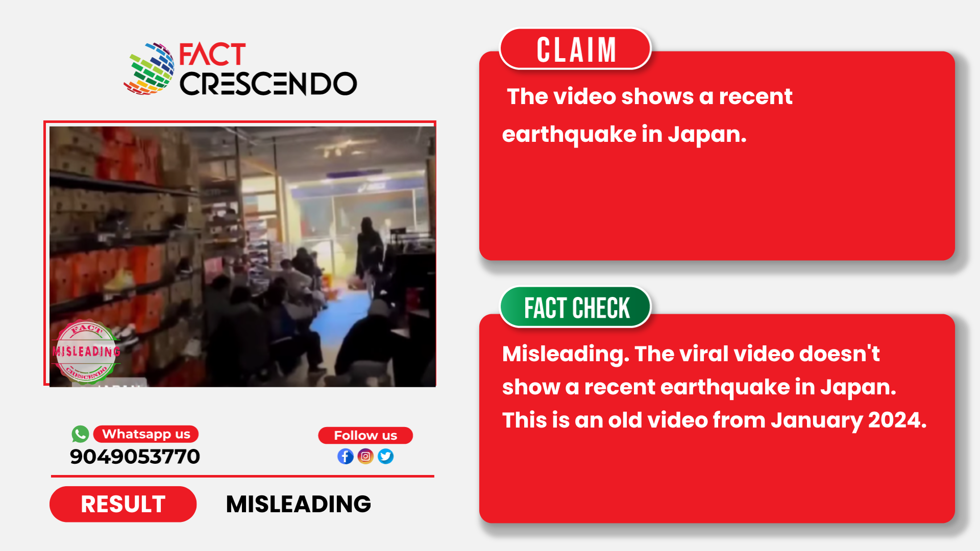 From our investigation, we can say that the claim is misleading. The viral video doesn’t show a recent earthquake in Japan. This is an old video from January 2024.
