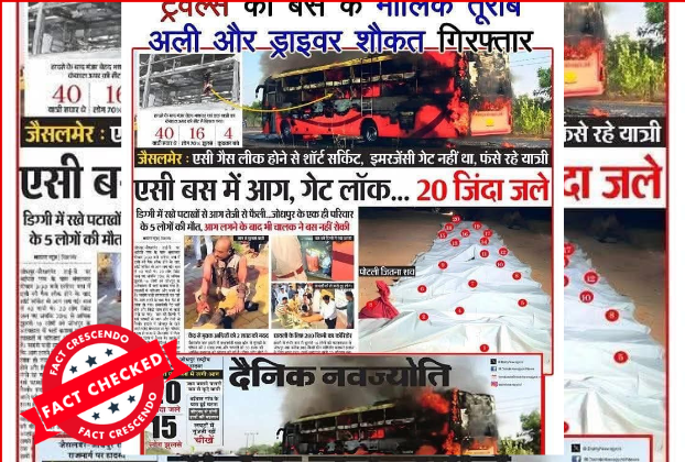 On 14 October 2025, a moving AC sleeper bus caught fire on the Jaisalmer-Jodhpur Highway in Jaisalmer. The incident that took 26 lives, was caused by a short circuit in the bus’s air-conditioning system, as reported by officials. Against this backdrop, a photo of a newspaper (Dainik Navjyoti) page went viral on social media, containing […]