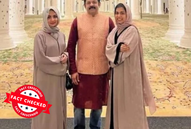 This viral image shows Kerala BJP leader Krishna Kumar and his daughters at the Grand Mosque in 2022, not the Bihar Tourism Minister. An image showing a man with two women wearing hijab is going viral on social media with the claim that it shows BJP leader and Bihar’s Tourism Minister Krishna Kumar, who made […]