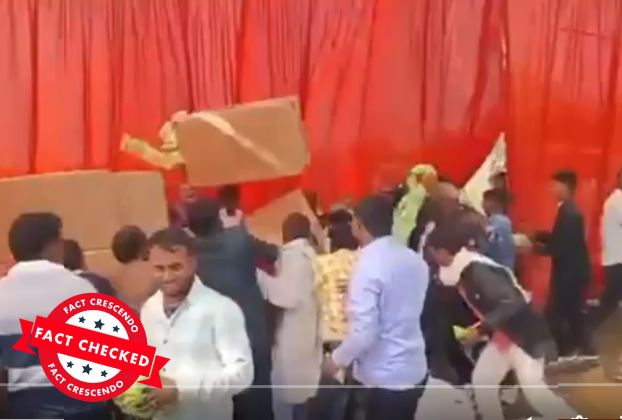 This video shows a ruckus during a mass wedding in Uttar Pradesh’s Hamirpur district. A video of people creating a ruckus by throwing cartons and looting some packets is going viral on social media with a claim that it shows RSS members attacking a Catholic school in Mancherial, Telangana. The users who share the video […]